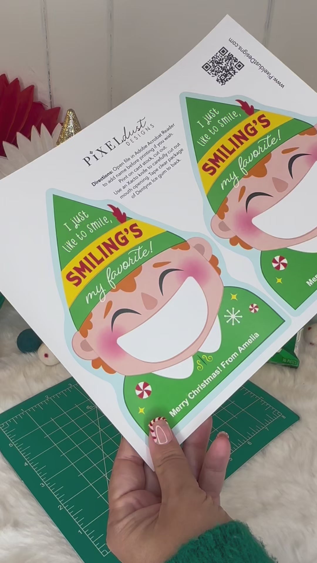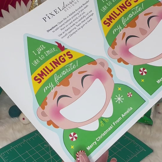 A treat that is sure to make everyone SMILE! These adorable Christmas chewing gum treat cards pair perfectly with Dentyne Ice chewing gum for a fun holiday treat idea. Great for classroom treats, party favors or co-worker gifts! Cards print 2 per page. Listing is for a digital printable file - print as many as you need! Nothing physical will be shipped.
