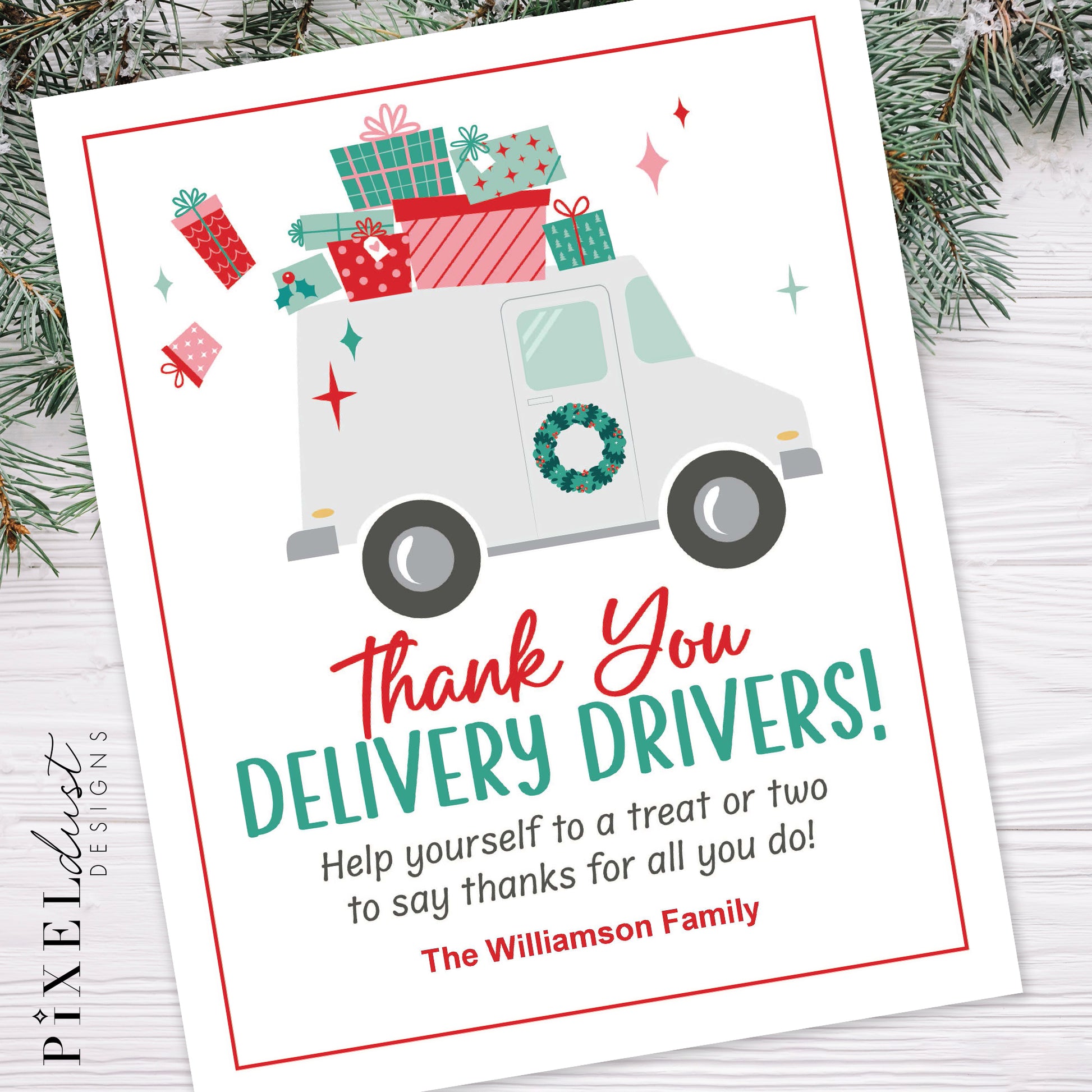 Delivery Driver Snack Sign, Christmas Deliveries Thank You, Printable Sign