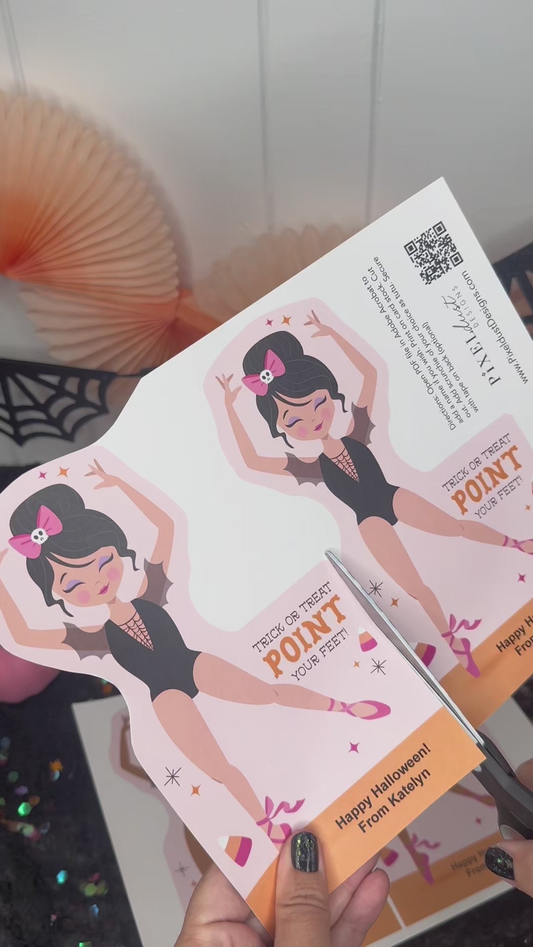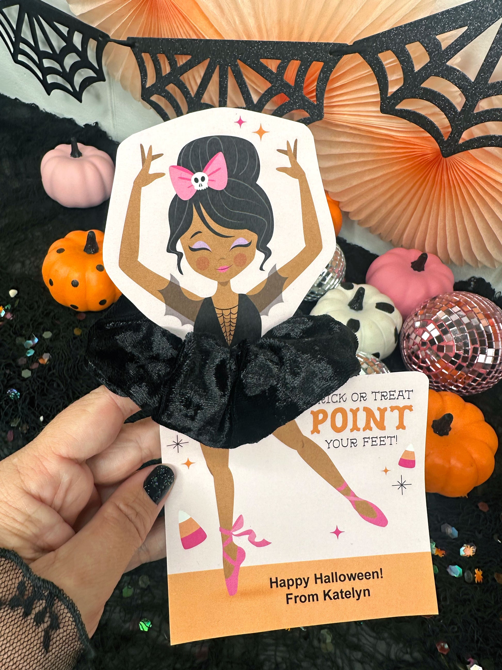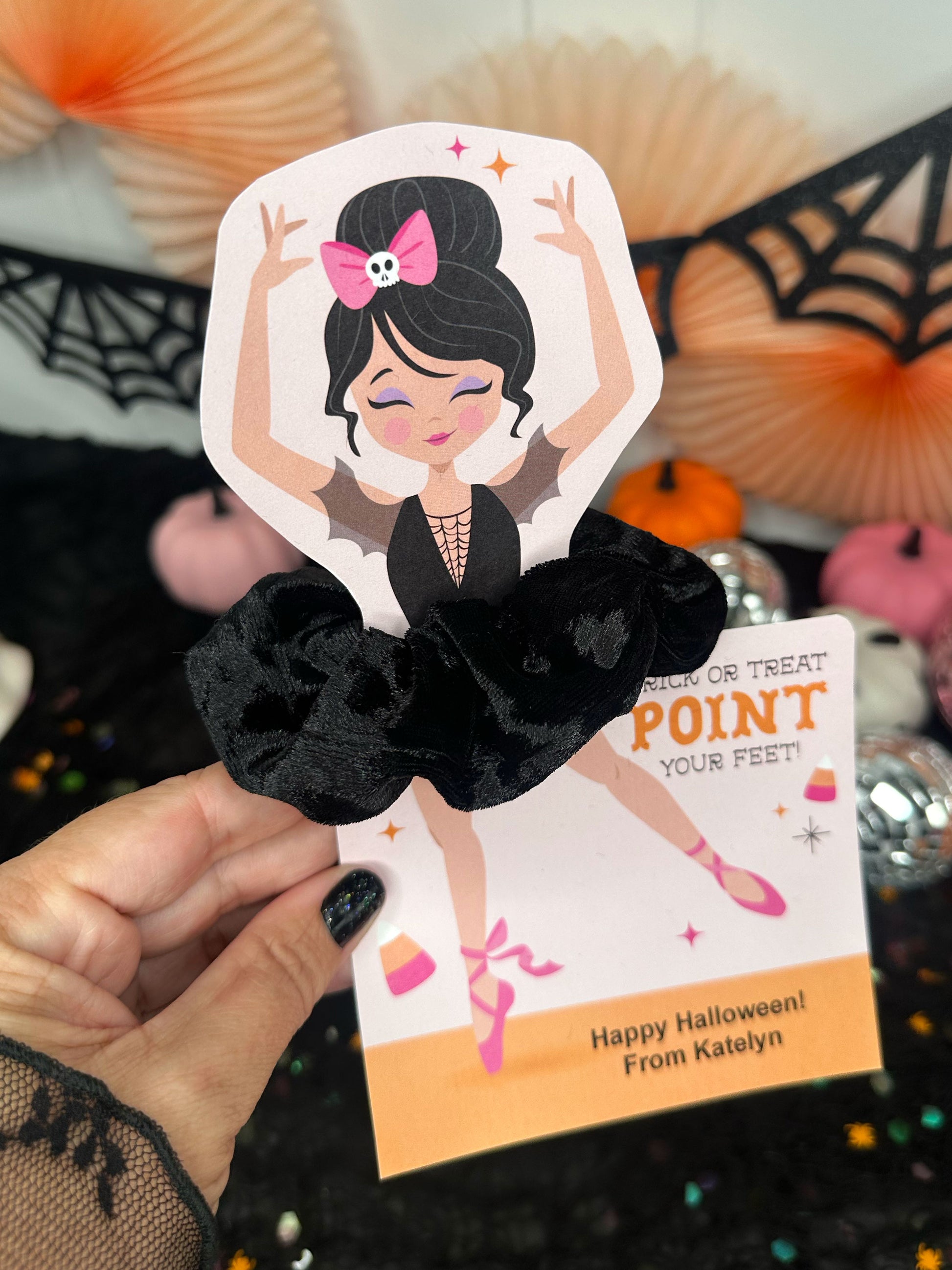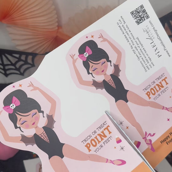 Halloween Ballerina Scrunchie Cards, Printable Ballet Dance Class Halloween Gift