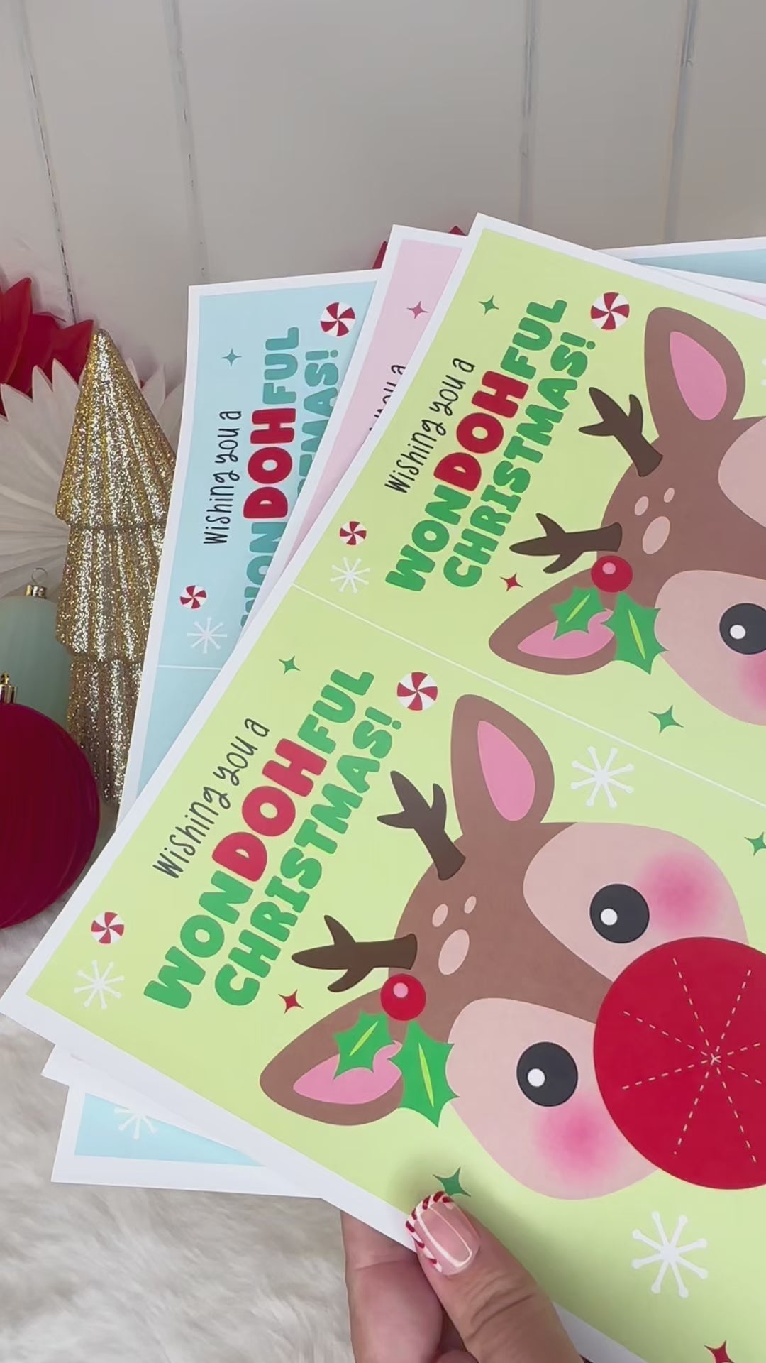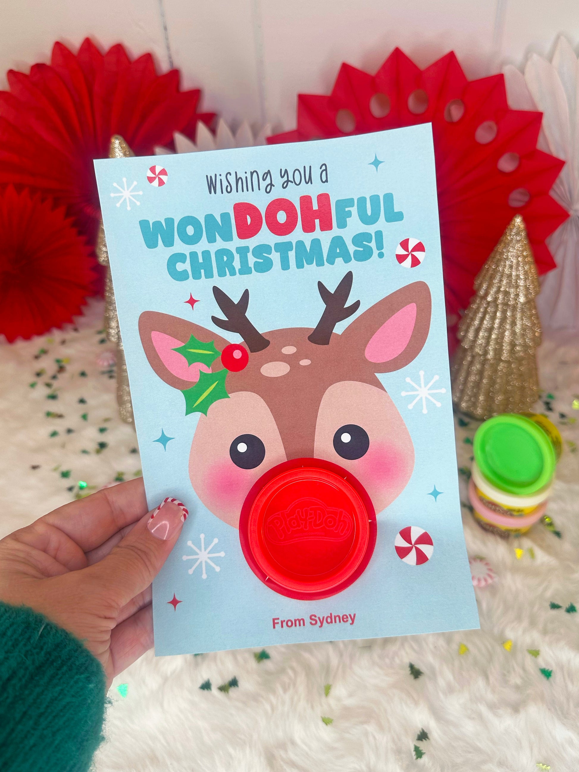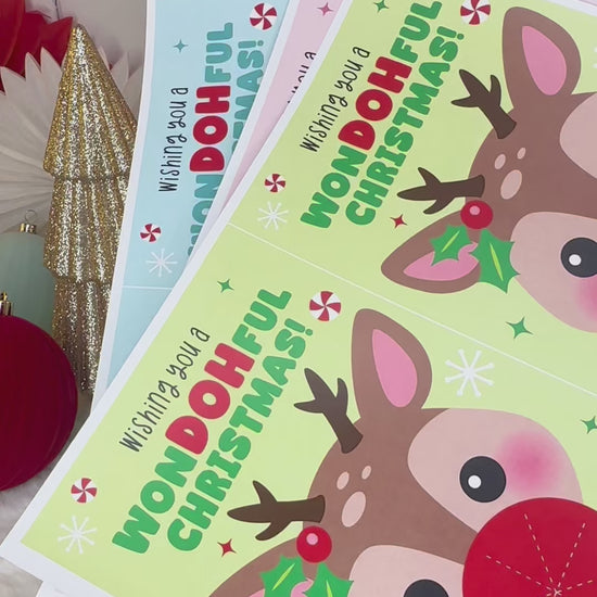Play Dough Rudolph Printable Christmas Treat Cards for Kids
