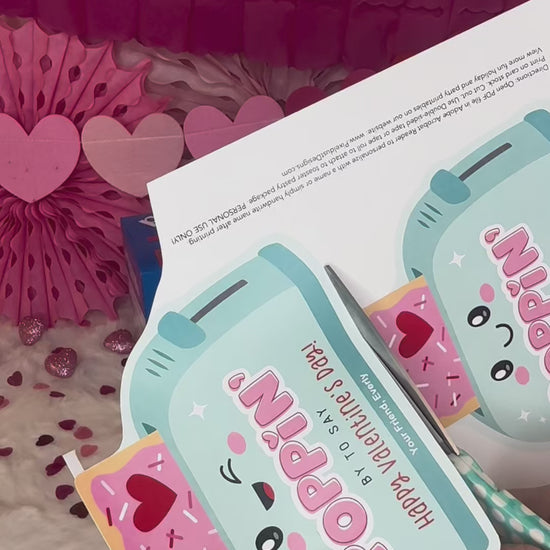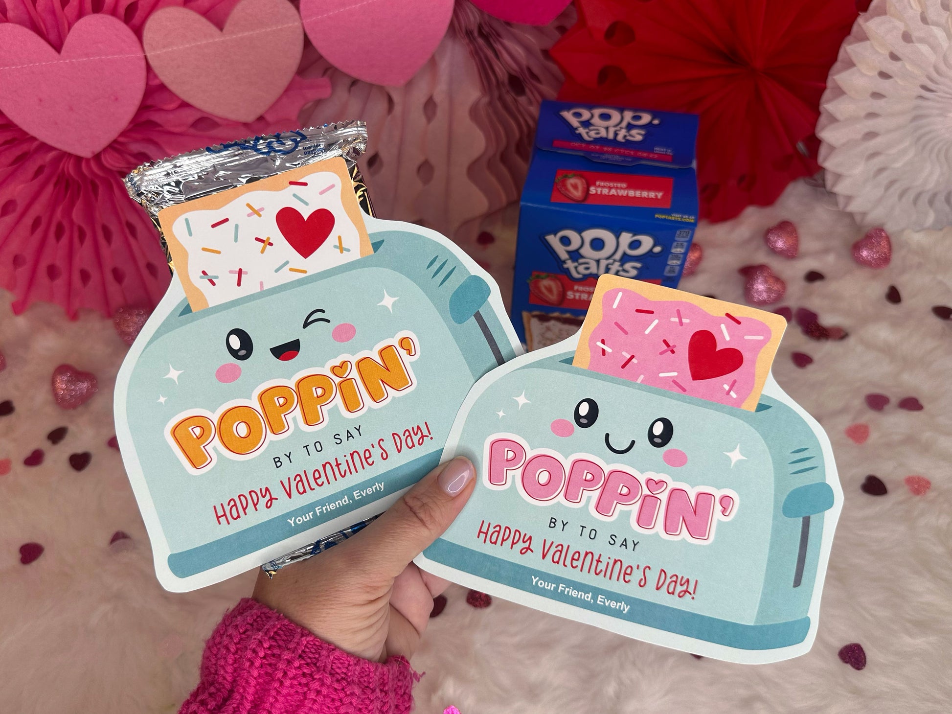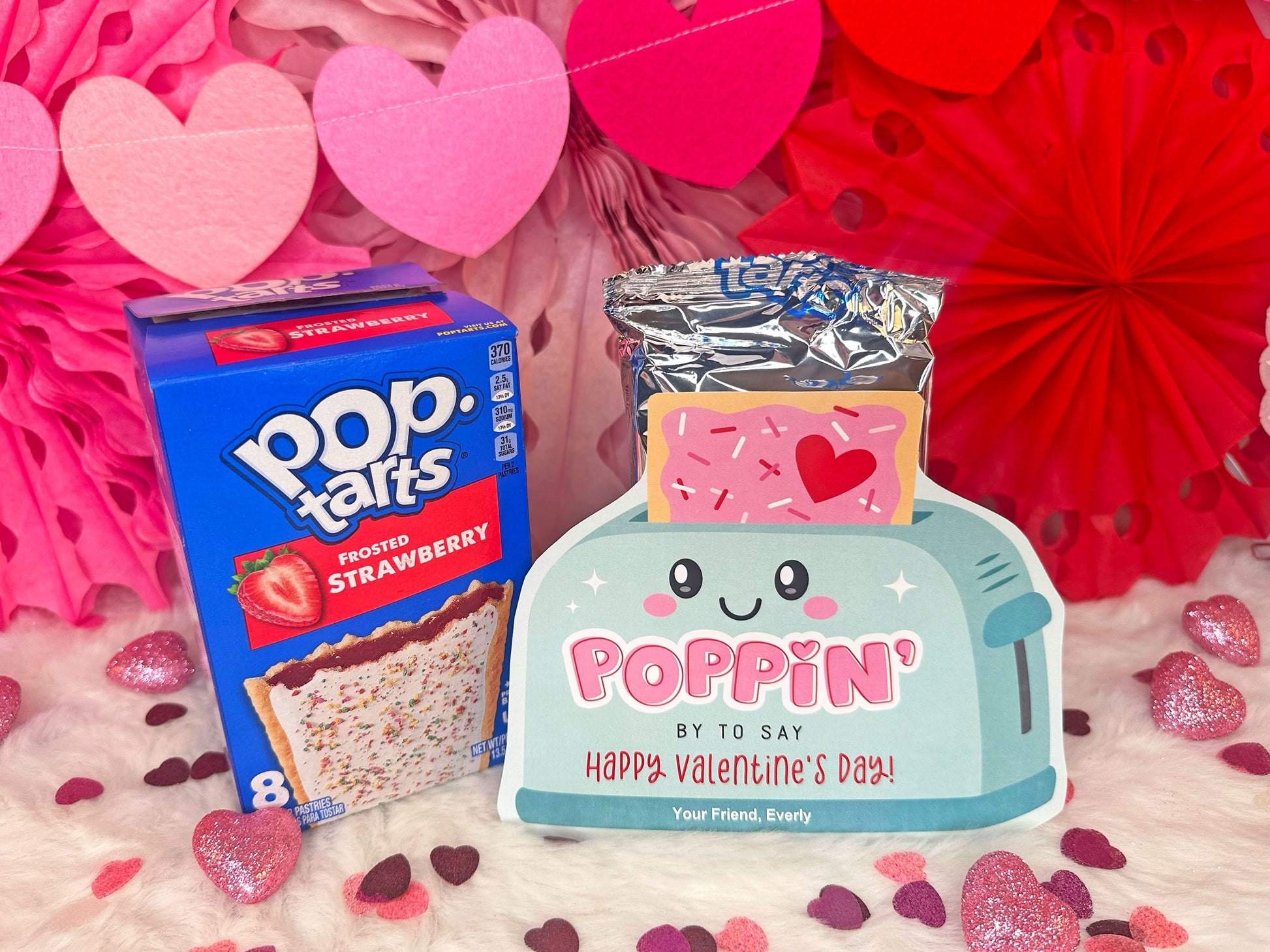 POP by to say Happy Valentine's Day with these adorable retro toaster valentines! Cards print 2 per page in 2 color options and pair perfectly with your favorite toaster pastry! Print as many as you need! Nothing physical will be shipped.