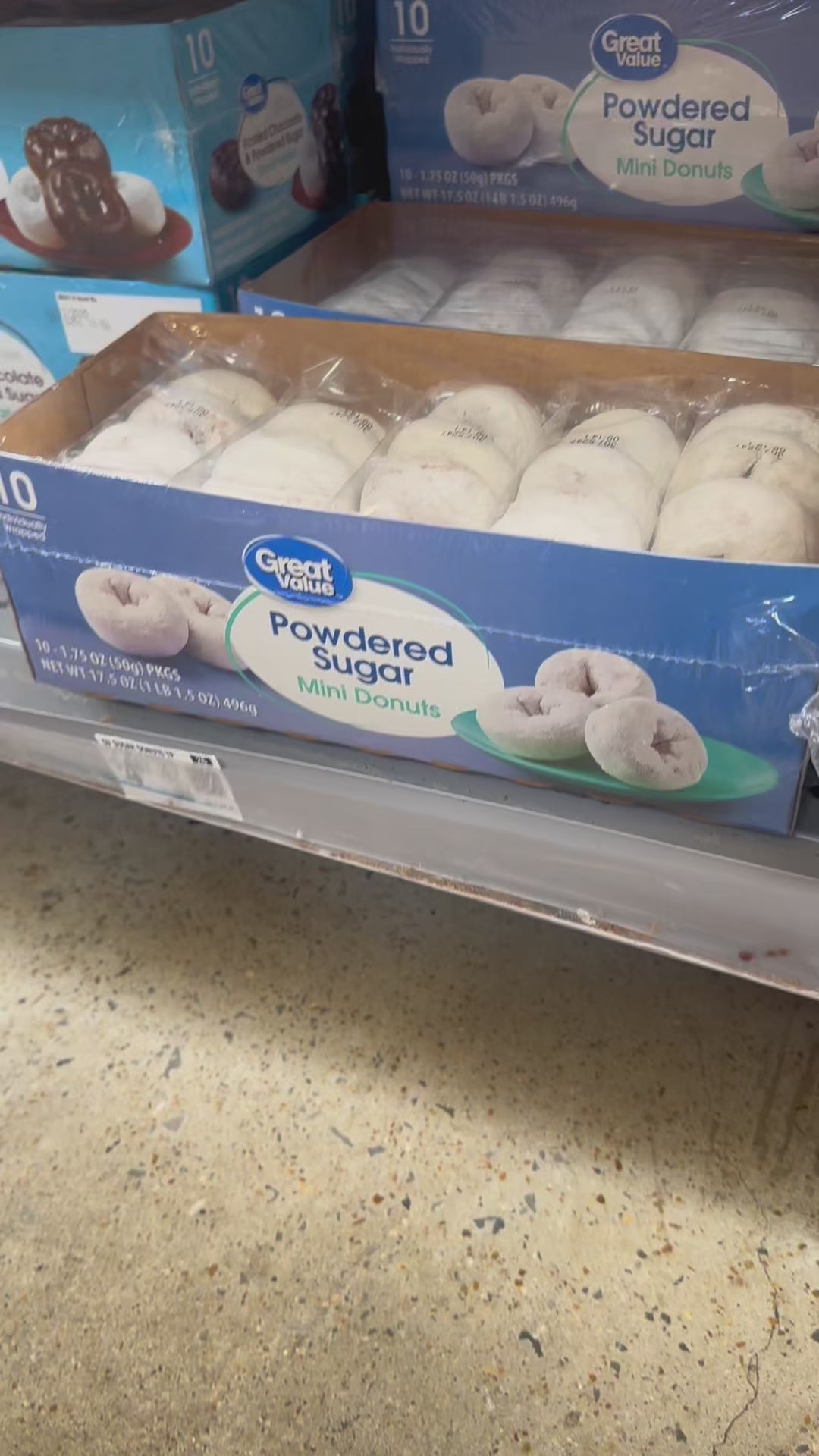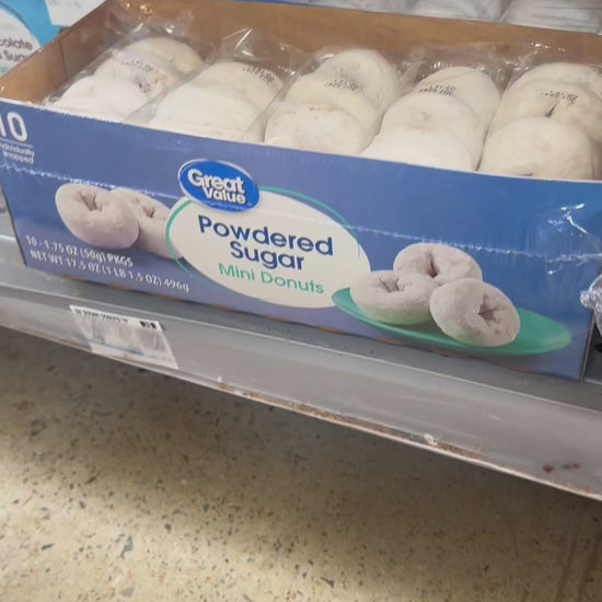 4. Use double-sided tape to attach powdered donuts. (We used the Great Value brand donuts from Walmart which work perfectly.)